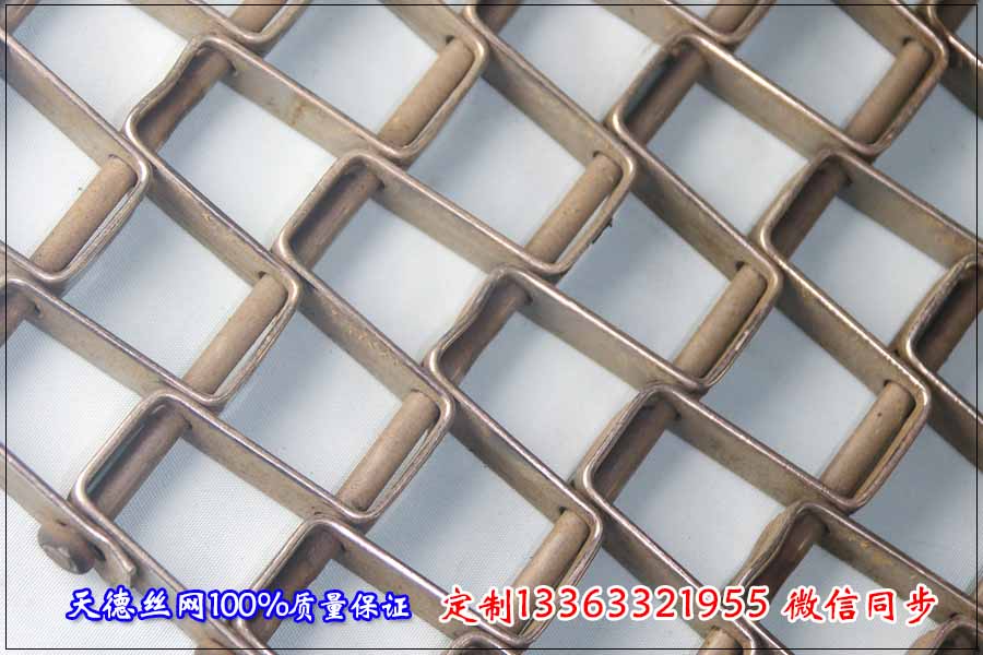 長城網帶名稱:長城網帶、板式網帶、長城網帶 條板加工成格子狀,并以直心力骨連結固定,焊邊或者握邊。
