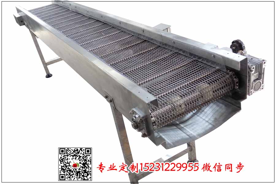 網(wǎng)帶輸送機(jī)是輸送行業(yè)必不可少的輸送設(shè)備,昨天桂林的袁總來(lái)電咨詢(xún)不銹鋼網(wǎng)帶輸送機(jī),用來(lái)輸送小食品,我公司根據(jù)袁總提供的相關(guān)資料定制具體數(shù)據(jù)如下:規(guī)定在食品行業(yè)我們采用不銹鋼304材質(zhì),機(jī)器的總寬在700毫米,總長(zhǎng)度在5米,要求輸送機(jī)不帶腿,鏈條不銹鋼網(wǎng)帶 鏈節(jié)距為31.75毫米,不銹鋼桿直徑為8毫米,鏈桿之間的距離為200毫米,不銹鋼絲直徑為1.5毫米,網(wǎng)帶節(jié)距為30毫米,網(wǎng)帶螺距為20毫米, 配帶0.75千瓦電機(jī),帶減速機(jī)和變頻器,要求速度比為1:50。控制開(kāi)關(guān)要求正反均可調(diào)節(jié)。 網(wǎng)帶輸送機(jī)的用途特別廣泛,不銹鋼網(wǎng)帶是輸送機(jī)中重要的配件,可以根據(jù)輸送產(chǎn)品的形狀大小加工成不同規(guī)格結(jié)構(gòu)的網(wǎng)帶。 不銹鋼輸送機(jī)整機(jī)堅(jiān)固耐用,不愛(ài)生銹,使用壽命長(zhǎng),已經(jīng)廣泛的應(yīng)用在解凍流水線(xiàn)輸送設(shè)備中。