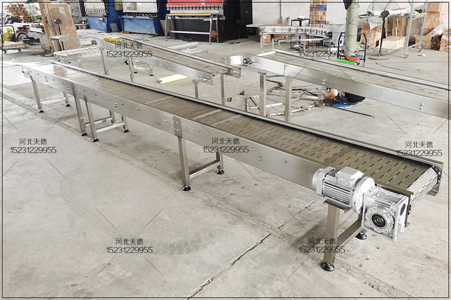 鏈板輸送機歡迎來電定制河北天德雞胸肉油炸流水線鏈板輸送機:15231229955 網址:http://www.weekrent.cn/