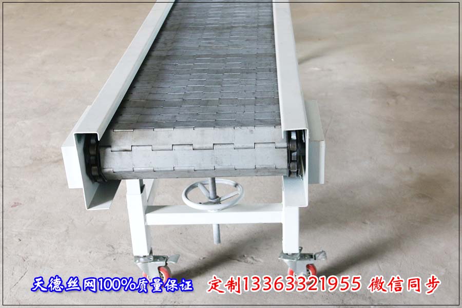 1、鏈板輸送機在運輸過程中運輸和儲存 產品在運輸和儲存過程中注意不能與酸堿、水、油等腐蝕性物品接觸,同時還要遠離熱源;不能長時間陽光照射和雨雪浸淋;儲存溫度要保持在–100C—500C,濕度要保持0.6-0.8。運輸和保存過程中不能擠壓碰撞。