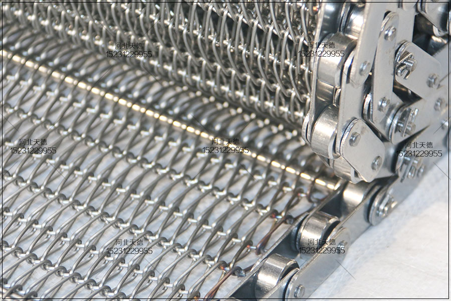 鏈條式金屬輸送帶 網(wǎng)帶式金屬輸送帶上的沖擊載荷主要與以下因素有關。即裝載點高度、材料質量和棱角形狀、托輥質量、輸送帶橫向彈性模量和托輥內(nèi)襯彈性模量等。在裝載點使用緩沖懸掛托輥組,能降低金屬輸送帶的動載荷,降低帶式輸送機輸送帶的損壞概率。