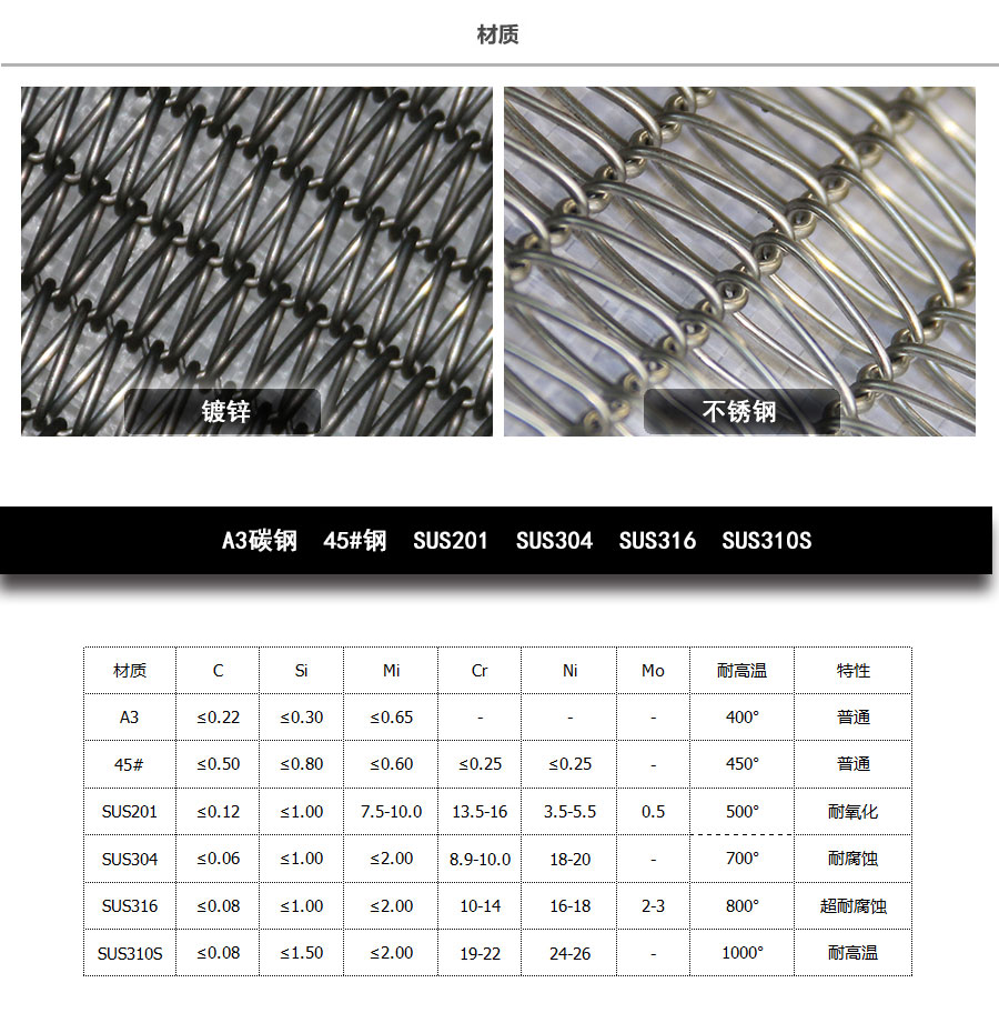 直軸型網帶:由左右交替的網條通過直串條聯結而成,該系列網帶網孔較密,網孔間距均勻,能使網帶行走平穩。該系列網帶適合于承載體積較小而質地相對較重的輸送線。