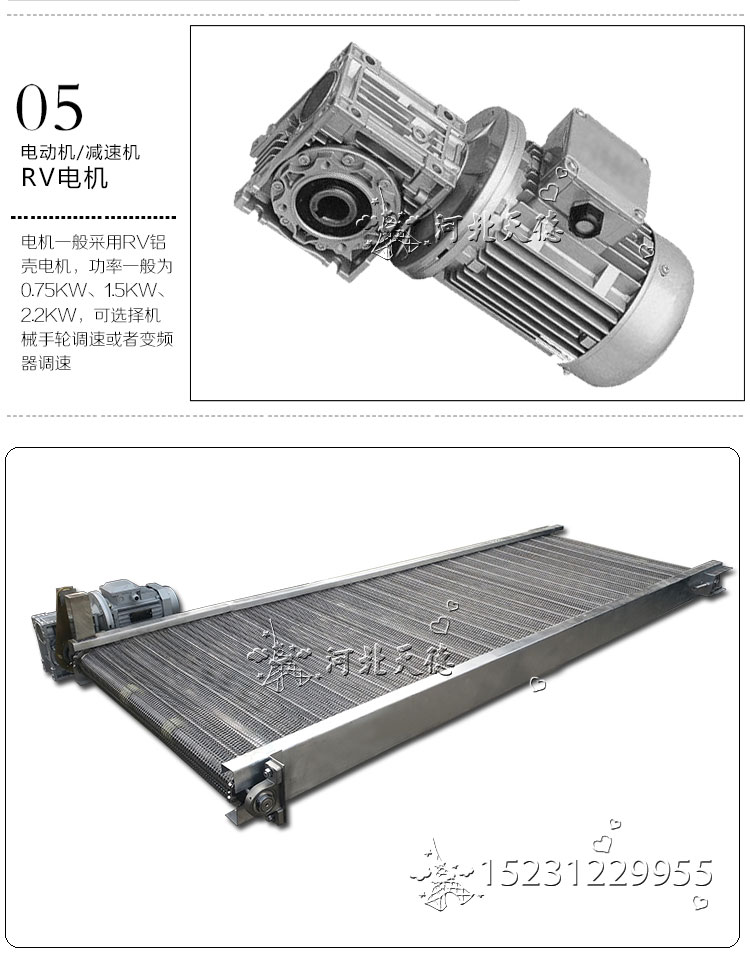 4.采用不同材質的網帶可以起到不同的輸送作用并且滿足不同環境的需要,能夠滿足環境溫度零下-30度至120攝氏度之間的輸送要求。