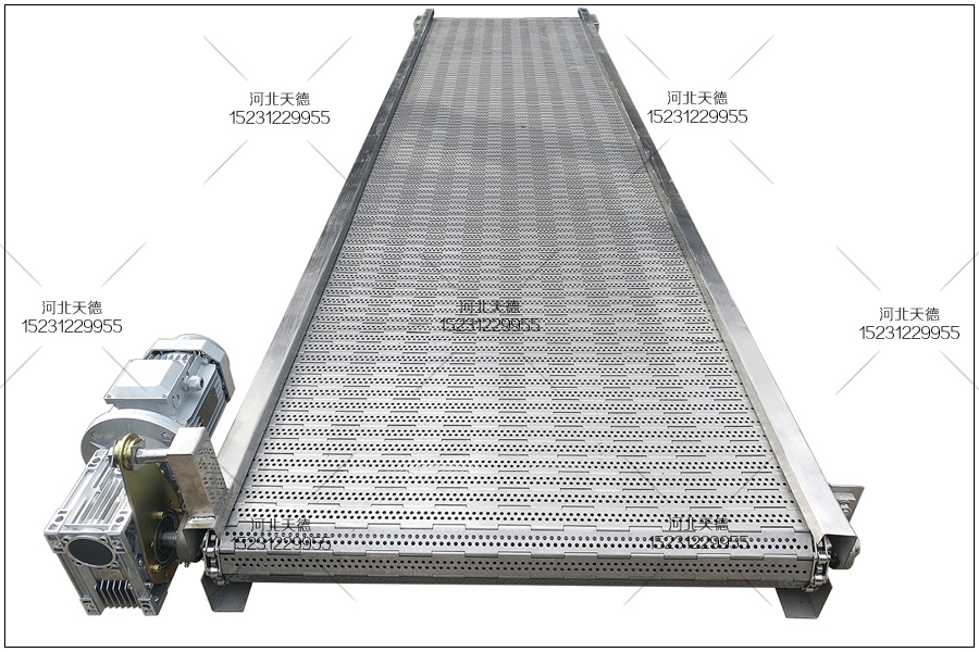這臺(tái)鏈板輸送機(jī)是廣西的客戶定制的,這臺(tái)輸送機(jī)要求整機(jī)采用不銹鋼304材質(zhì),因?yàn)檫@臺(tái)不銹鋼輸送機(jī)要在水中長(zhǎng)期的使用,如果采用碳鋼的材質(zhì)會(huì)生銹的,而且使用一段時(shí)間后就需要更換 新的,我們采用不銹鋼304材質(zhì)使用時(shí)間更加的長(zhǎng)久。